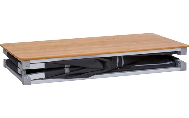 Due to the special folding technique ready for use in just a few steps. Particularly robust, durable construction, which can withstand even very frequent assembly and dismantling without damage. The shelf is splash-proof, waterlogging of the hardboard is to be avoided.