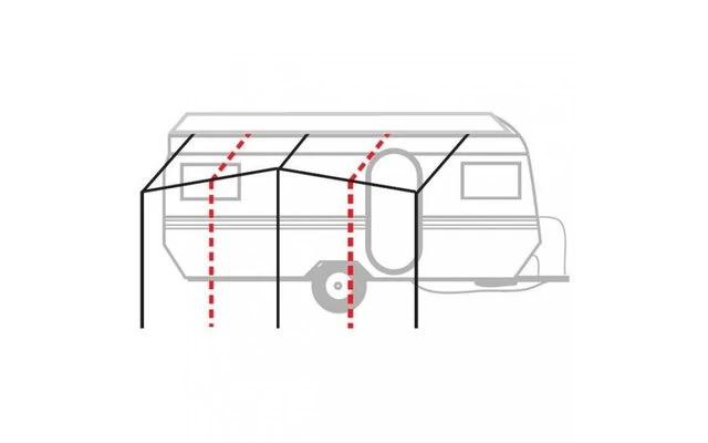 From awning sizes from 910 cm and for use in strong weather conditions, we also recommend at least 2 roof hook rails and vertical supports.